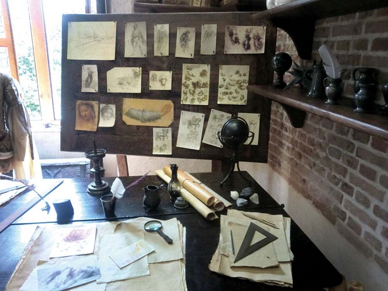 Tại đây còn lưu bản vẽ “cầu thang xoắn kép” nổi tiếng được xây dựng tại tòa lâu đài hoành tráng Château de Chambord gần đó, mô hình xe đạp, máy bay và nhiều thiết bị máy móc khác, thậm chí có cả quy hoạch một thành phố và một kênh đào để thuận tiên cho việc đi lại vì thời đó chủ yếu là giao thông đường thủy.